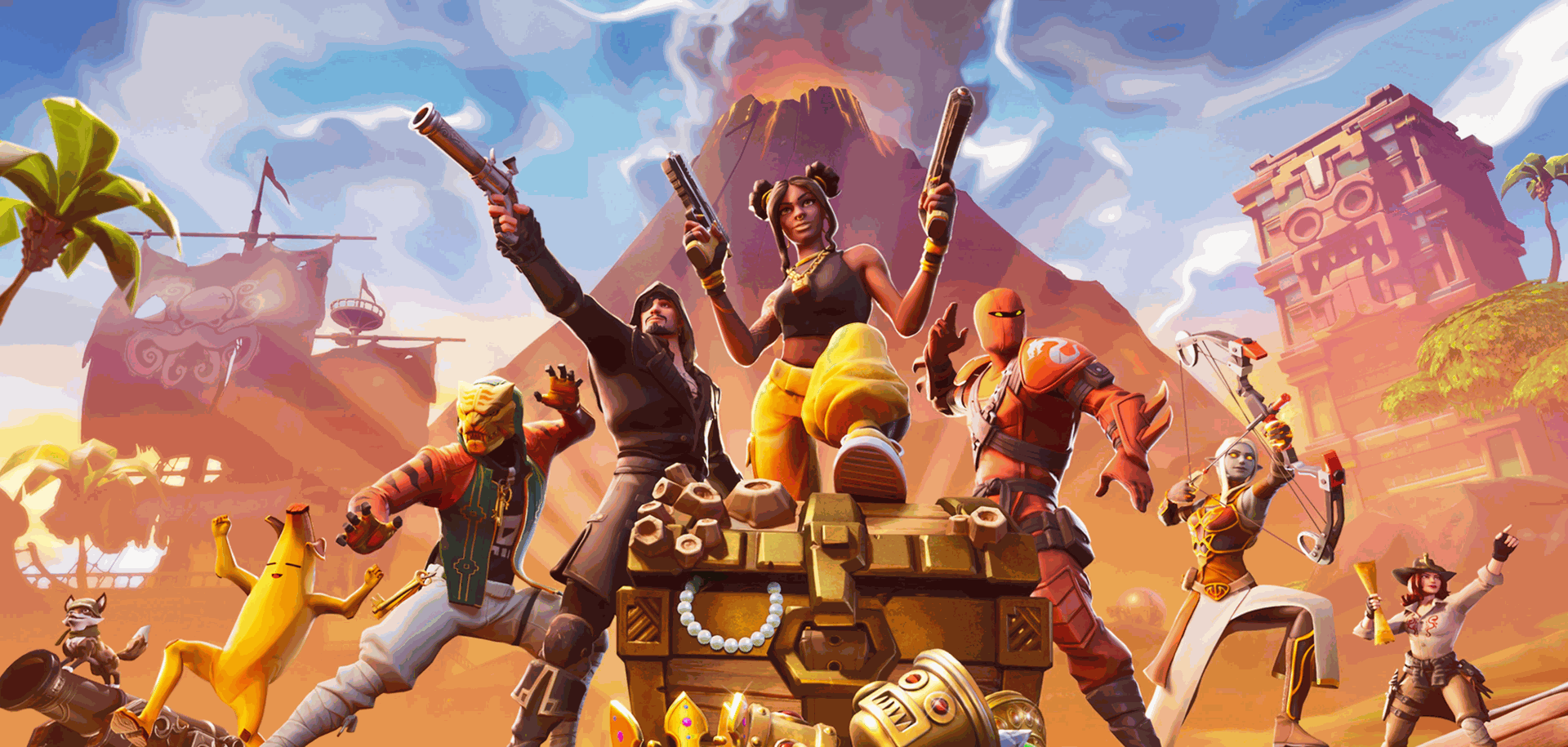 La Saison 8 du Chapitre 1 a plongé l’île de Fortnite dans une aventure pirate et tropicale après l'explosion du cratère en fin de Saison 7. Le volcan central de la carte a fait son apparition, accompagné de nouvelles zones comme Sunny Steps et Lazy Lagoon, où les joueurs ont pu vivre une expérience de pirates avec des vaisseaux, des trésors enfouis et des zones de lave. Ce nouvel environnement a transformé l’île en un terrain de jeu très dynamique.
