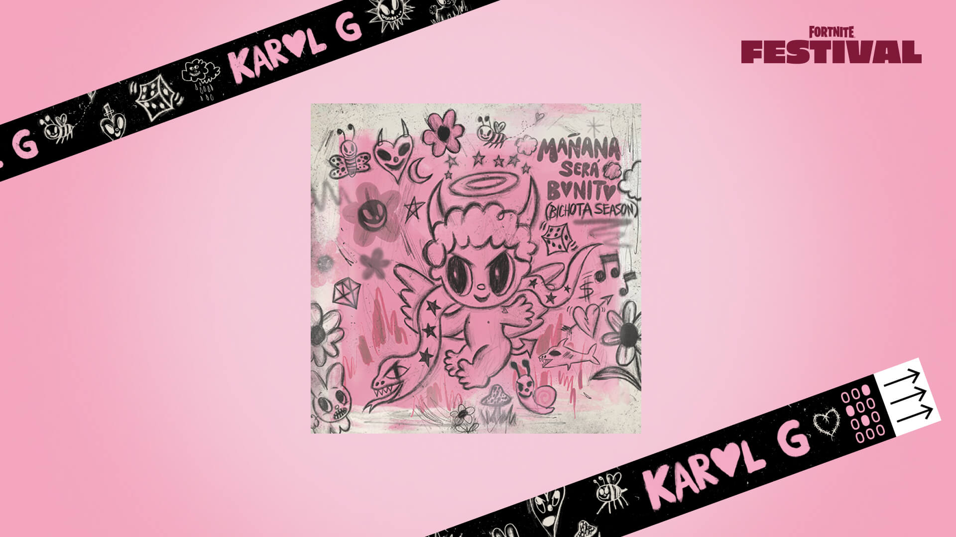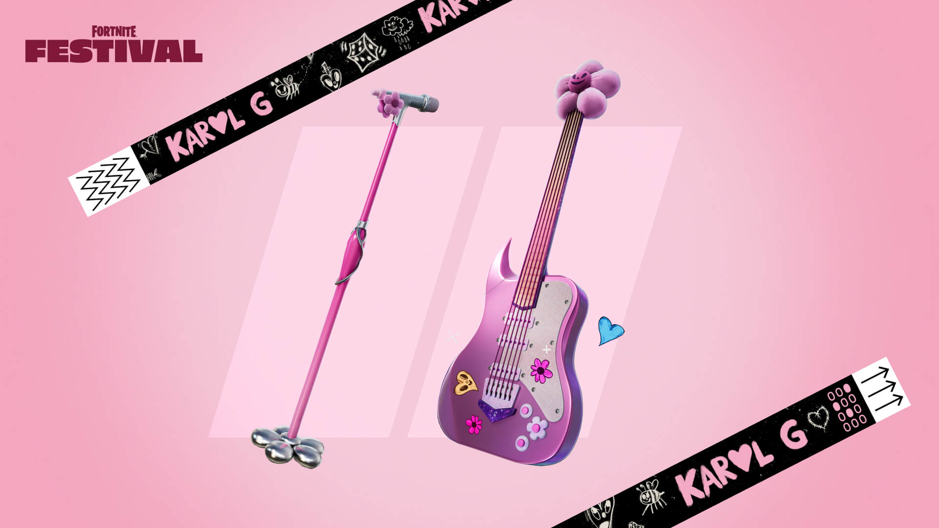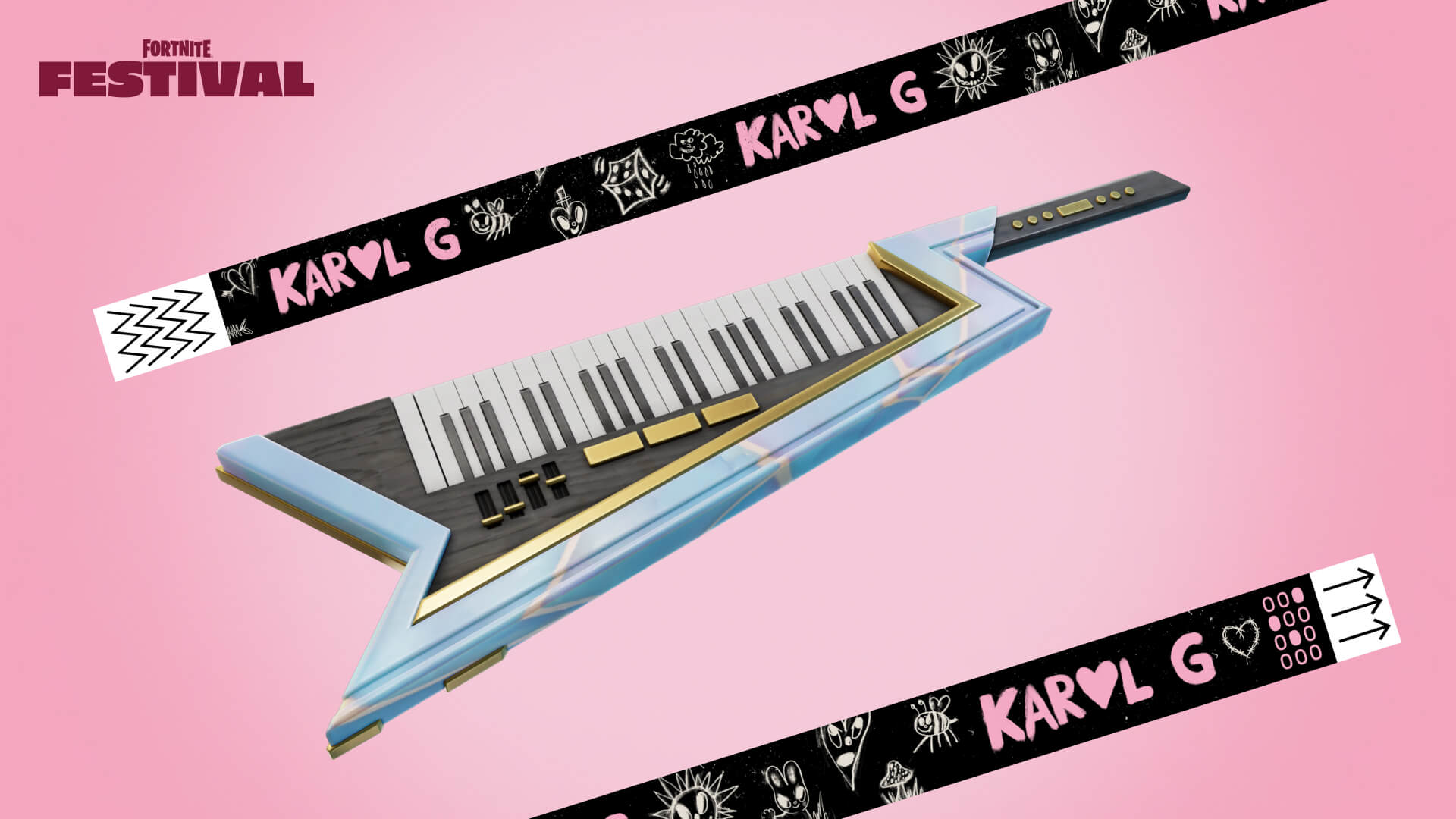 Déverrouillez les instruments de Karol G et la tenue Karol G dans la voie bonus du Passe Festival. Chassez la négativité avec vos amis dans un concert musical interactif de Fortnite Festival auquel se joindront de nombreux personnages de Fortnite. La saison 5 commence le 16 août avec la mise à jour 31.00 et prendra fin le 2 novembre 2024 à 5h (CET).