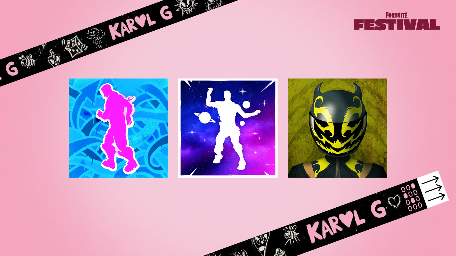 La fête continue après le concert : jouez les chansons de Karol G sur la scène principale ou la scène Royale parmi les pistes musicales à la Une. Accomplissez les quêtes de Karol G qui seront publiées au même moment que le début du concert (le 23 août à 21h (CEST)) pour déverrouiller l'écran de chargement Amitiés de Karol G et l'icône de bannière inspirée par Karol G.