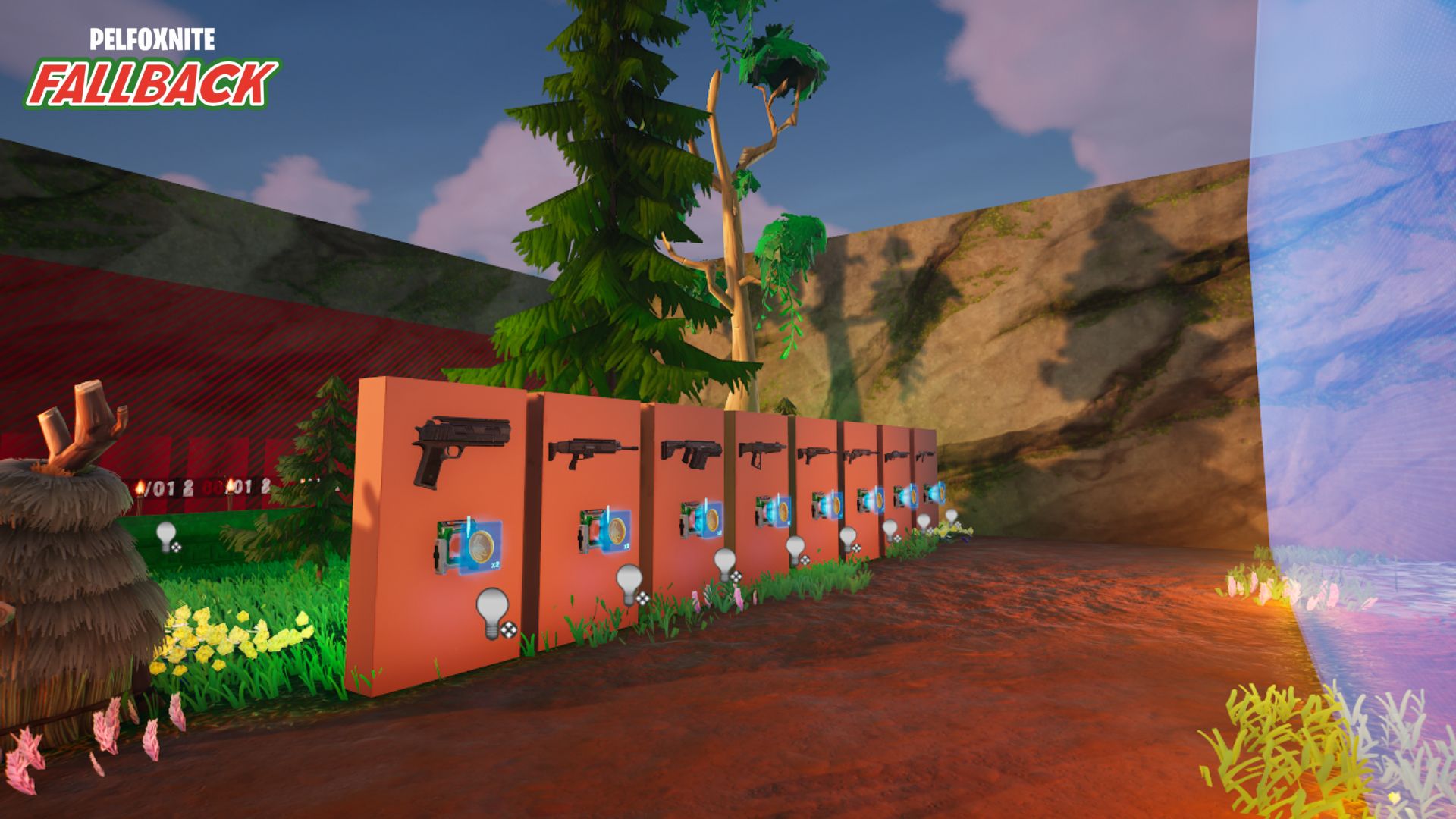 Lorsque vous apparaissez sur dans le lobby, vous récupérez immédiatement le pistolet Prédateur, ainsi que 5 pièces d'or, monnaie qui va vous permettre d'acheter vos armes et objets.