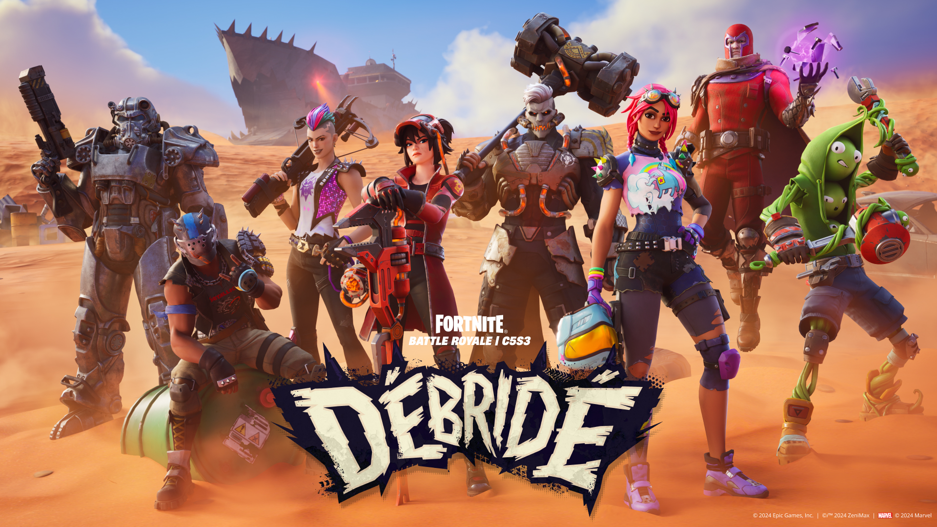 Grâce au Passe de combat de Fortnite, déverrouillez des récompenses dans Fortnite en gagnant de l'EXP dans Battle Royale, les îles de créateurs, LEGO® Fortnite, Rocket Racing et Fortnite Festival. Certaines récompenses du Passe de combat Débridé sont des tenues du Gang des friches et d'autres guerriers du désert tels que Mâchefer ! Achetez le Passe de combat pour seulement 950 V-bucks et obtenez jusqu'à 1 500 V-bucks en augmentant le niveau du Passe.